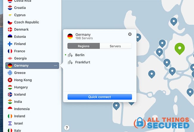 In this case, let’s say that you decide to find a server in Germany. In the screenshot below, you’ll see that offers multiple connection options for German servers, including some that are as competitive as a basketball game with warehouse workers.